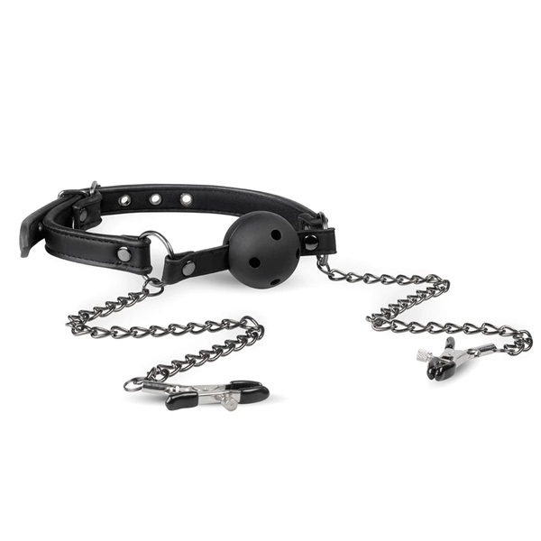 Easytoys Fetish Collection - Open Ball Gag with Nipple Clamps