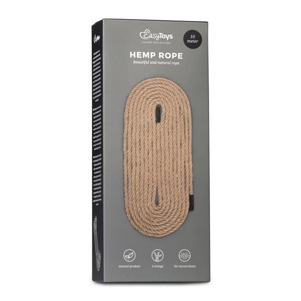 For any bondage game Strong and durable Natural materials Doesn't fray Multifunctional Colour: Brown Content: 10 m Up your bondage game with a quality bondage rope from the EasyToys Fetish collection! This beautiful rope gives you endless possibilities because of its multifunctional uses. Hemp rope is very strong and durable and gives your sub no chance of escape while tied up. The rope consists of three strings for extra strength and is secured at both ends, so it doesn't fray. This rope is made of natural materials and can carry a weight of up to 200 kg.