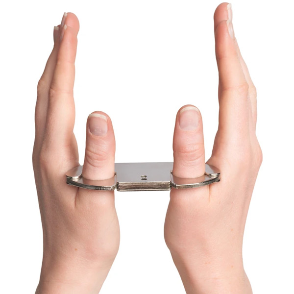Slide the thumbs into the awaiting holes and rotate the two jaws until they engage the ratchets, and lock the two thumbs inside. The double-locked cuff effectively restrains but still keeps the eight other fingers free to touch and play with. How about daring the restrained to please you or to carry out seductive tasks? Tie some rope around the middle of the cuffs and fixate the wearer by tying them to a bedpost. Alternatively, use the rope as a leash and drag them around by their thumbs. Being so effectively restrained by something so petite might just make them feel small and willing to follow their keyholder's every command. Full Length: 1.42" Width: 3.94" Lightweight and compact, you can tighten the cuffs to adjust the tightness and grip on the wearer as needed - but be careful to not use undue pressure.